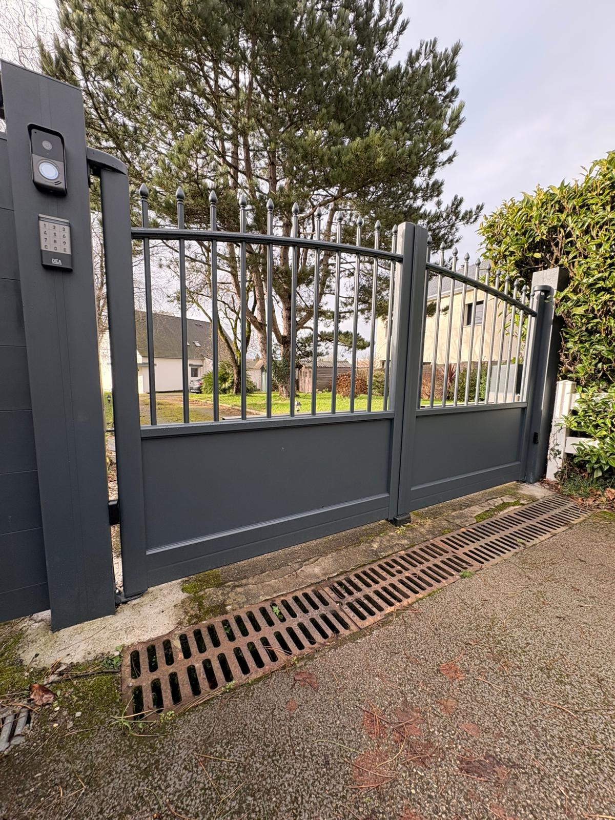 À Plaintel, pose d’un portail battant aluminium avec portillon et équipements de contrôle d’accès.