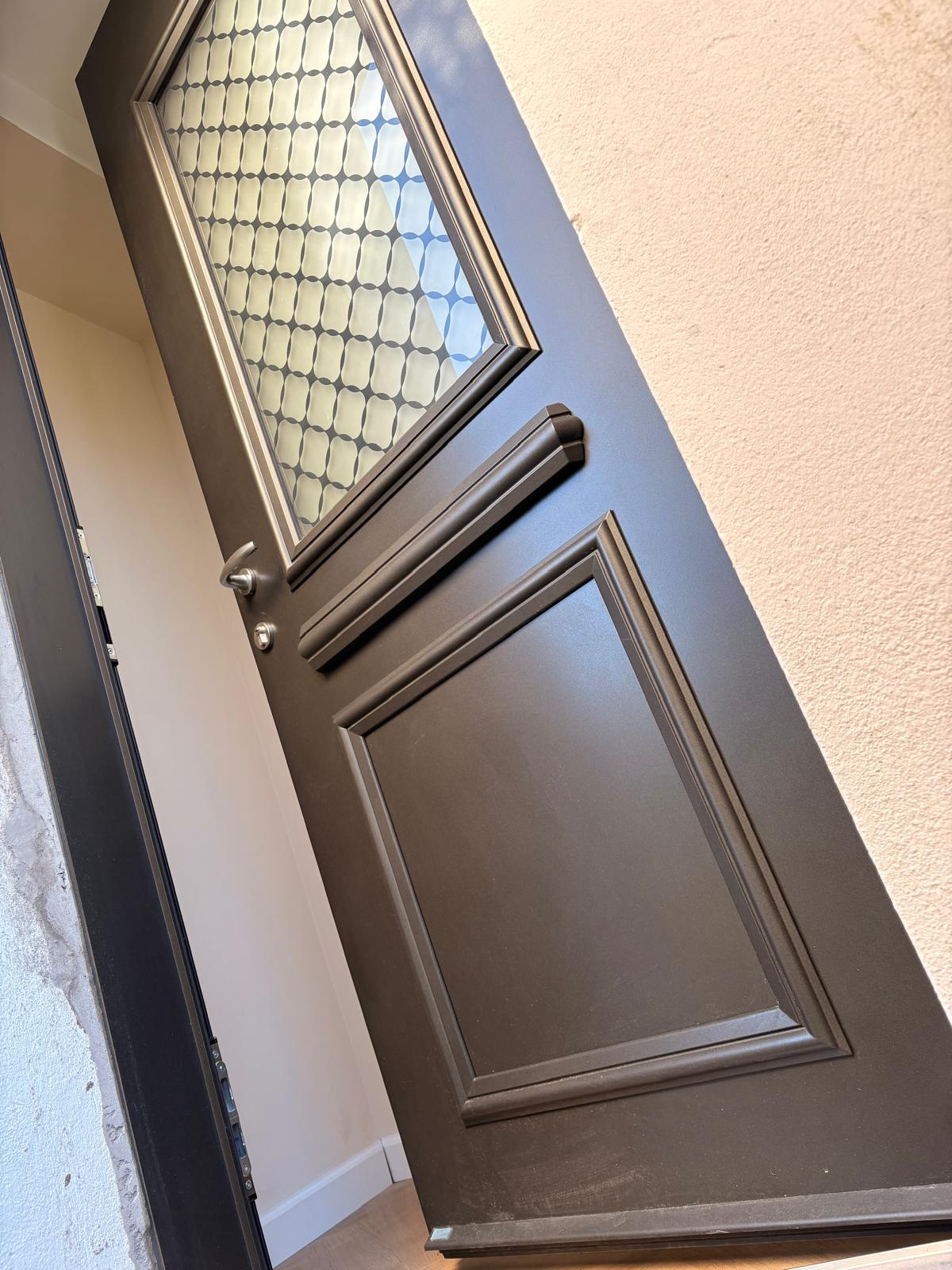 Une porte d’entrée qui combine sécurité, performance thermique et présence visuelle marquée en façade.