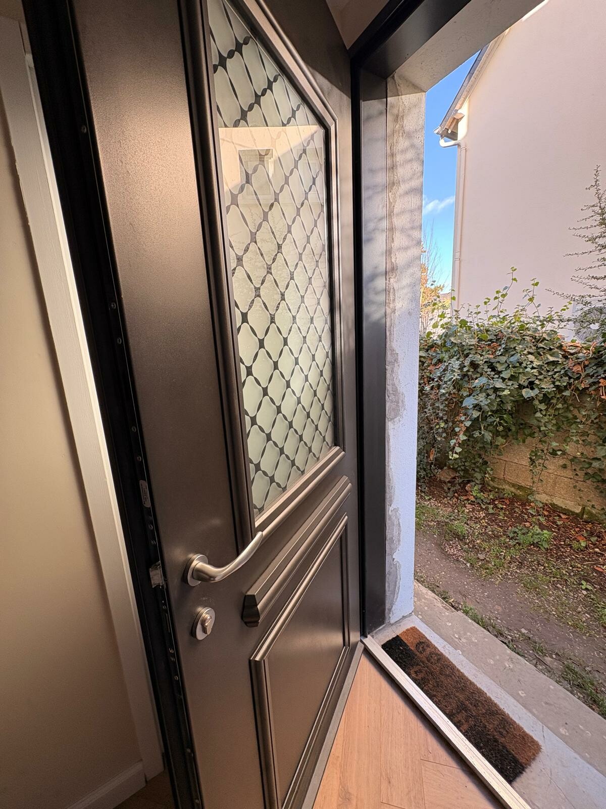 Installation d’une porte d’entrée lien- noire partiellement vitrée