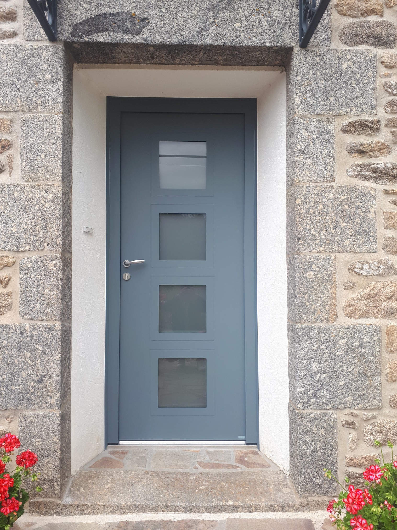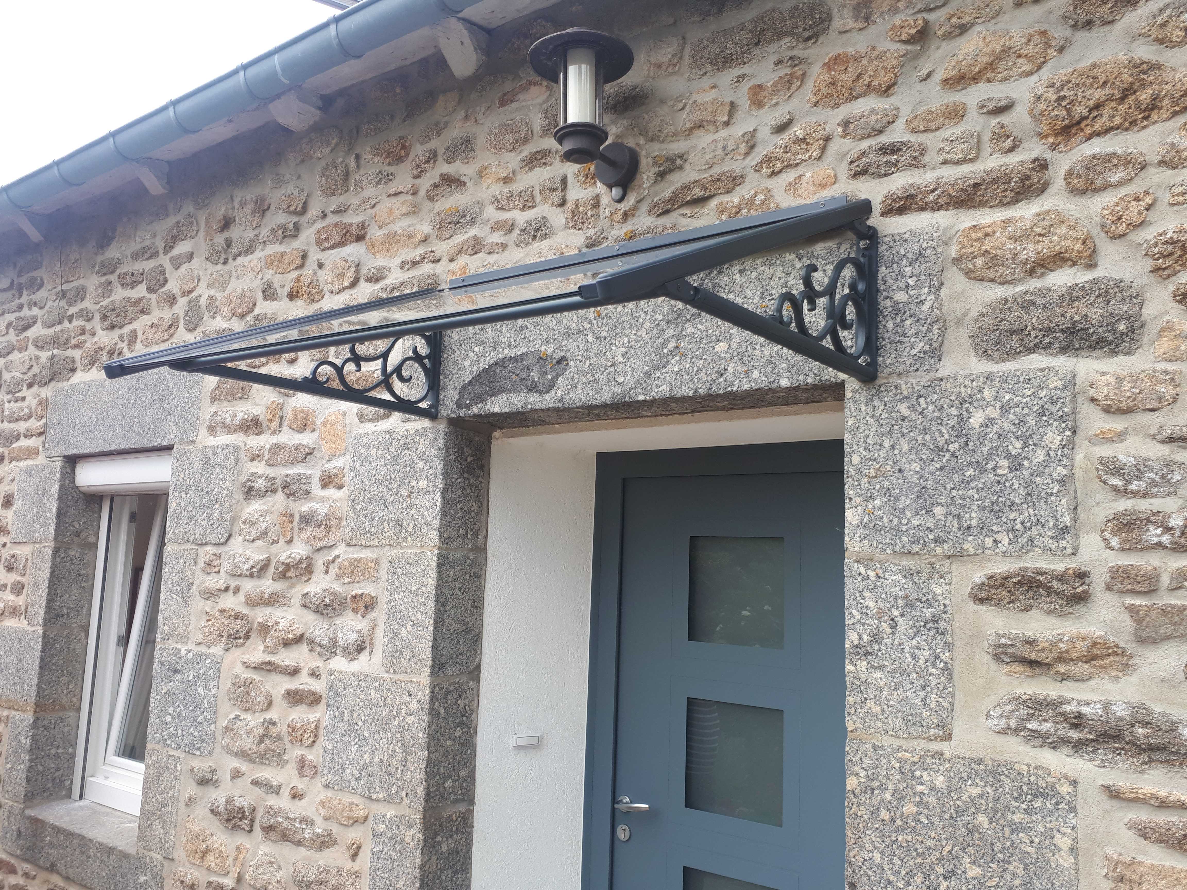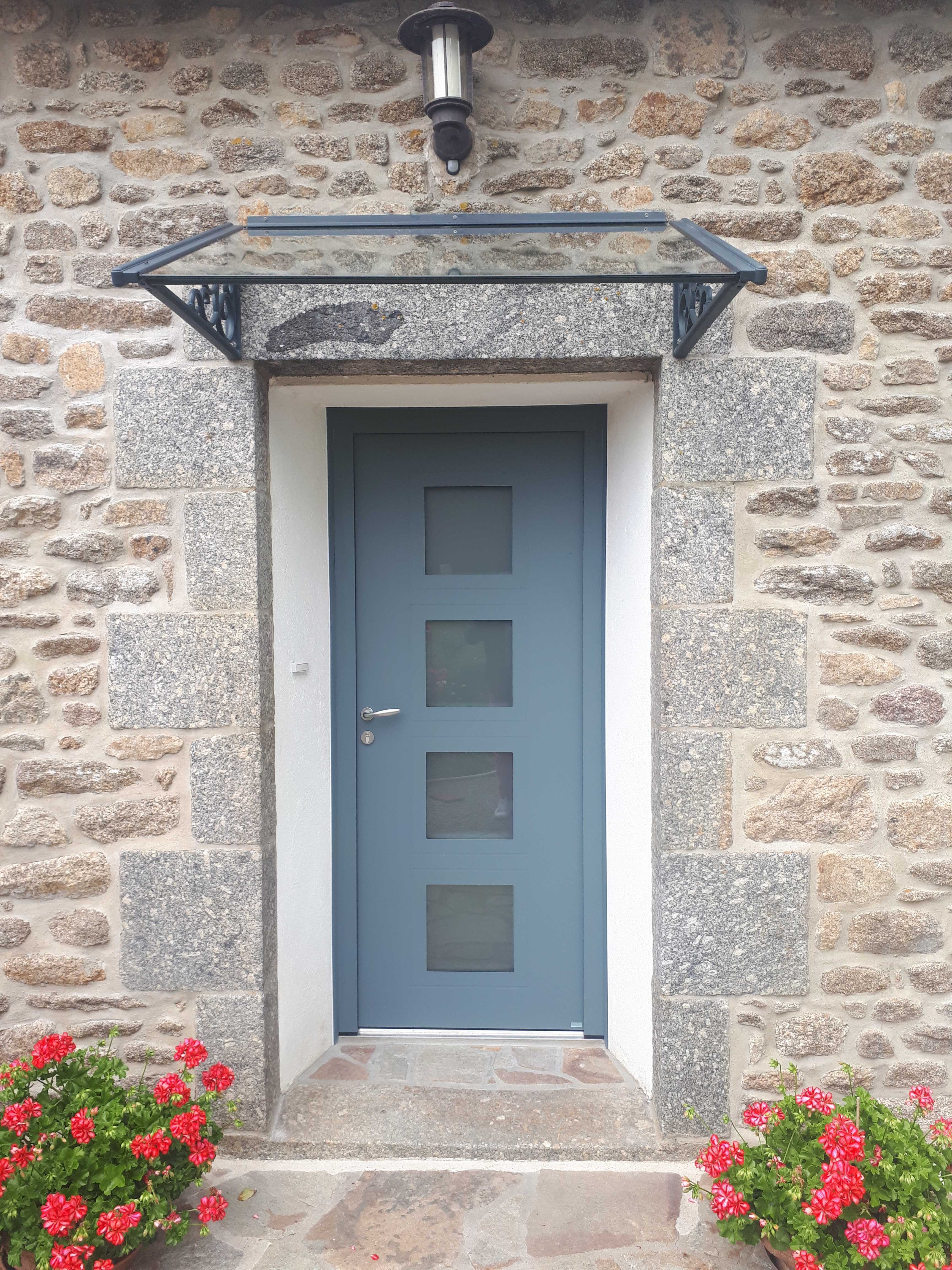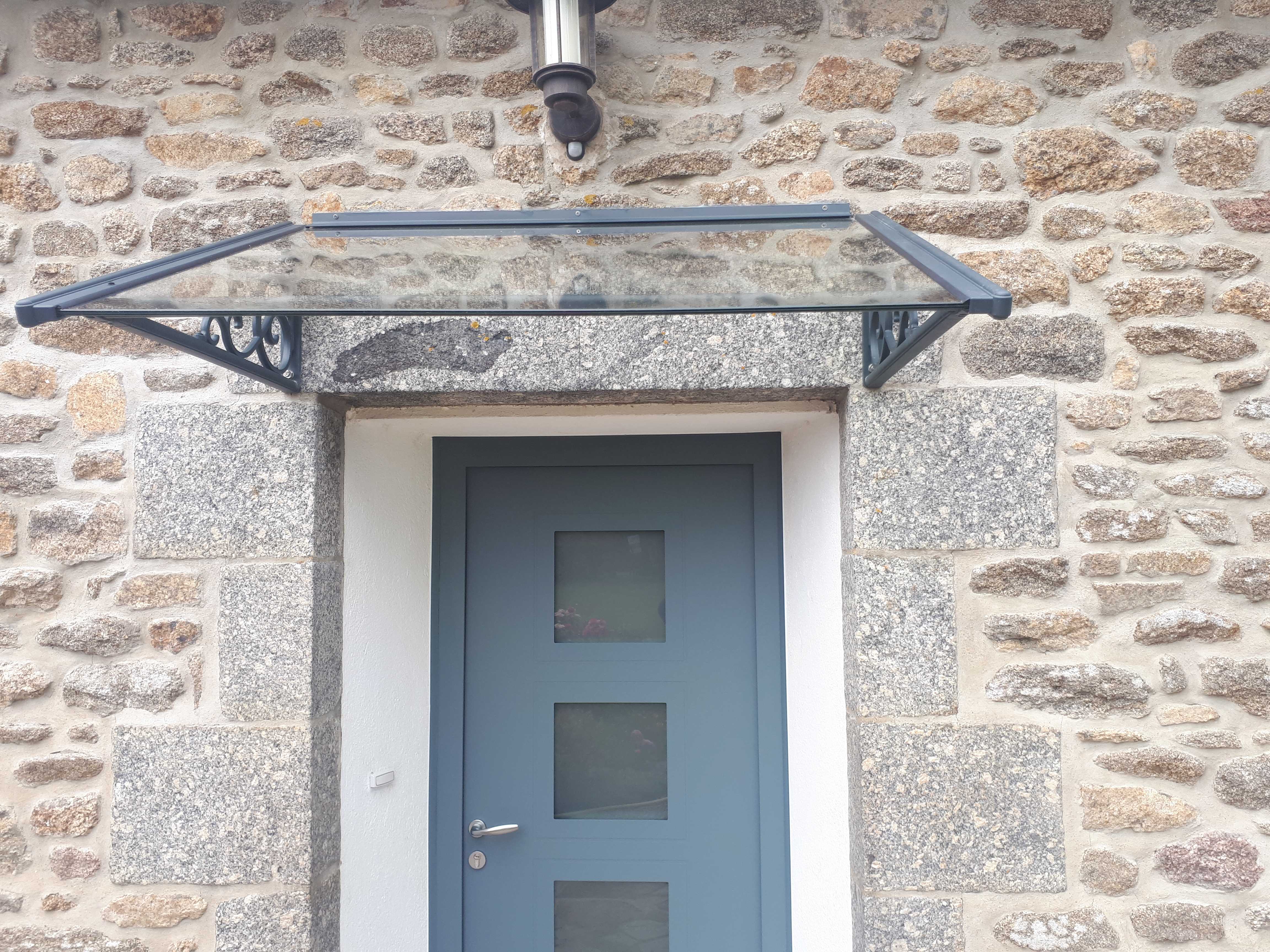 Porte d'entrée alu et marquise rétro pour maison en pierre - Plémy (22)