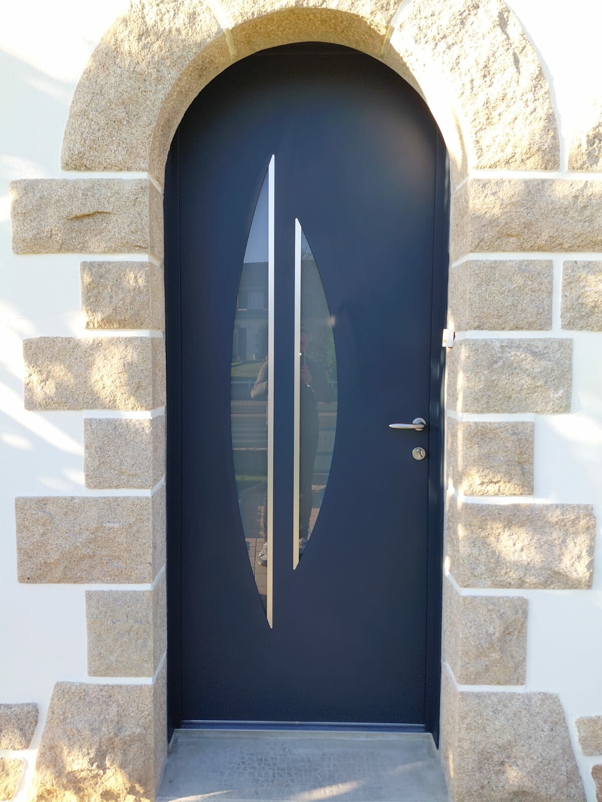 À Darsel (Trégueux), nous installons une porte d’entrée aluminium Bel’M, modèle Siva, avec finition gris 7016.